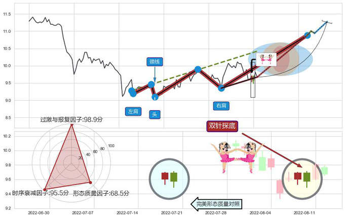 ➢ 🕰 价格走势在2022-08-09至2022-08-10期间形成双针探底,残存影响值:6.17
