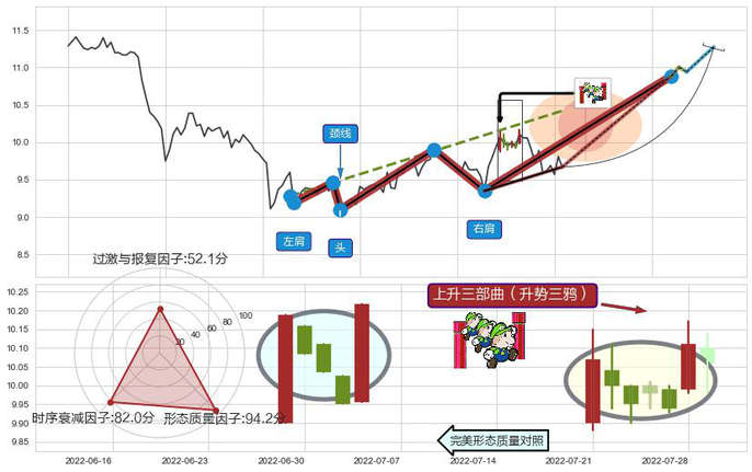 ➢ 上升三部曲(升势三鸦) 🔜 头肩底临近阻力猜想转换支撑上涨 综合量化分数:50.54 【中性】
