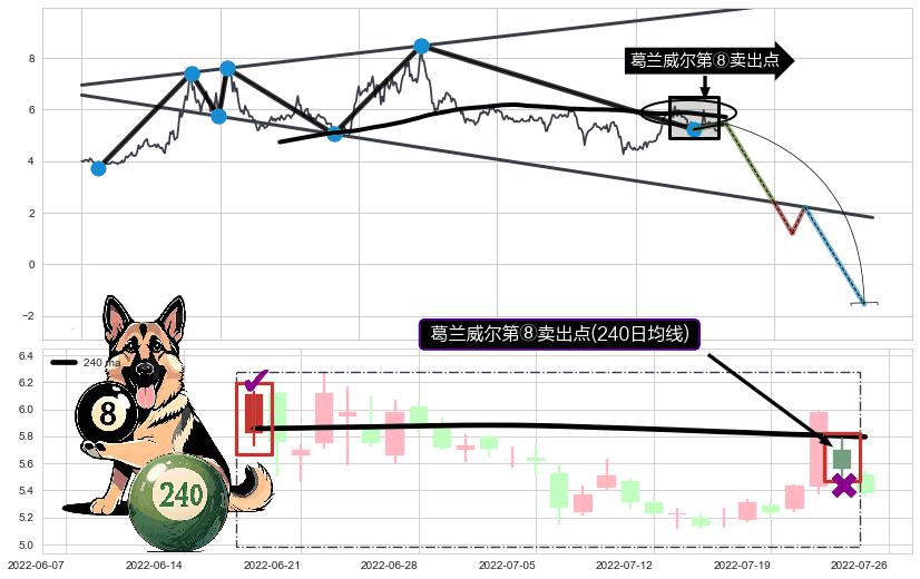 ➣ 🕰 价格走势在2022-06-17至2022-08-04期间形成葛兰威尔第⑧卖出点,残存影响值:-16.64