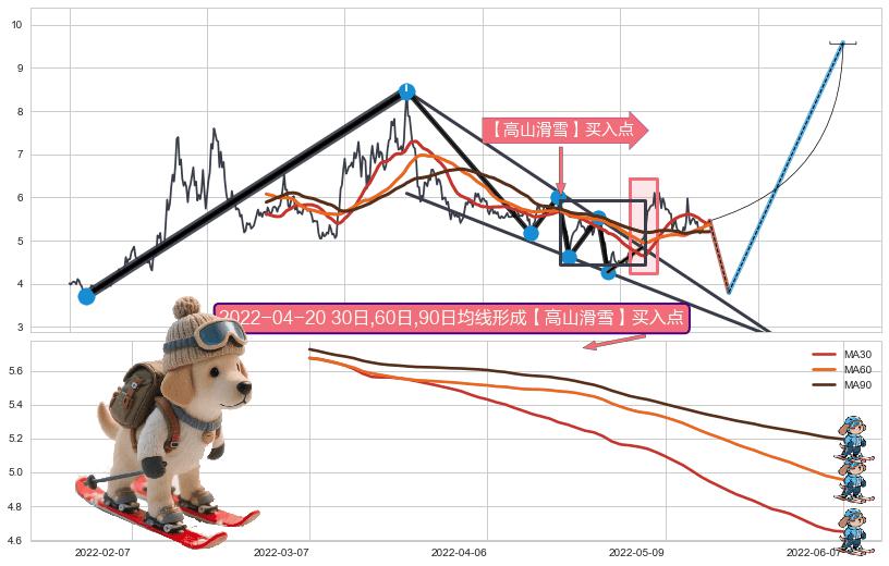 ➣ 【高山滑雪】买入点:高山滑雪是均线组合看多信号,后市看涨,买入信号