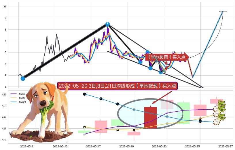 ➣ 🕰 价格走势在2022-05-20至2022-05-20期间形成【旱地拔葱】买入点,残存影响值:1.27
