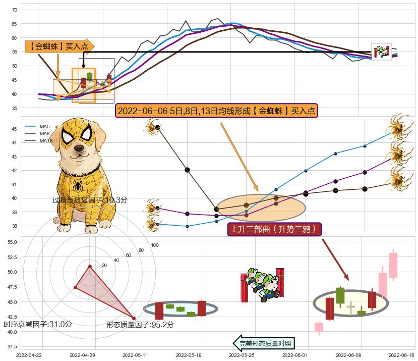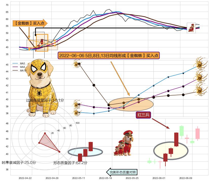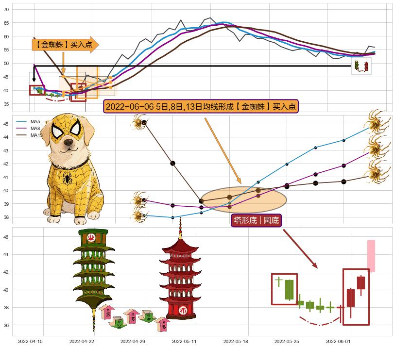 ➣ 2022-06-06日显现 5日-8日-13日均线 【金蜘蛛】买入点 看多信号,后市看涨,买入