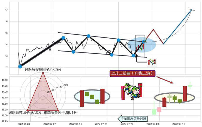 ➢ 🕰 价格走势在2022-08-05至2022-08-11期间形成上升三部曲(升势三鸦),残存影响值:5.15
