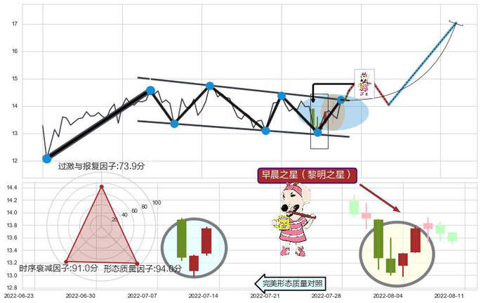 ➢ 🕰 价格走势在2022-08-02至2022-08-05期间形成早晨之星(黎明之星),残存影响值:6.13