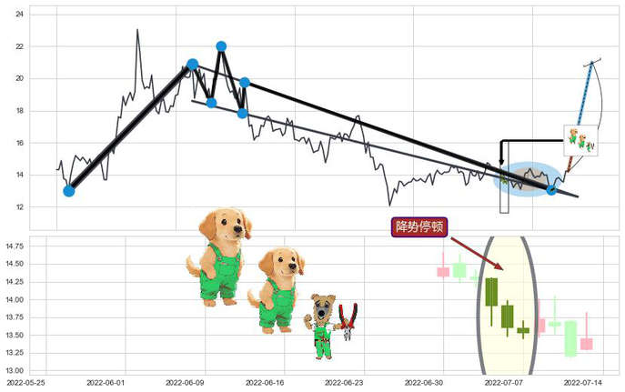 ➢ 🕰 价格走势在2022-07-05至2022-07-07期间形成降势停顿,残存影响值:7.26