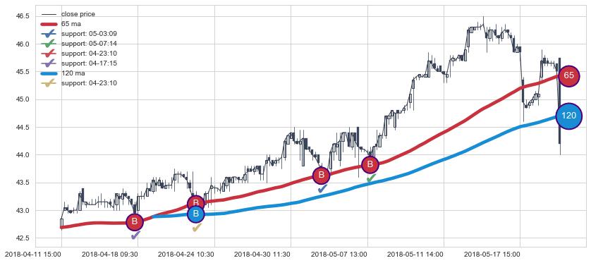 ➢ 最优均线组合共正确确认支撑阻力信号8处,正确确认率 80.00%