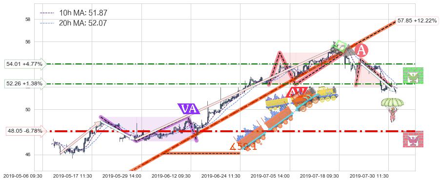 ♘ 阻力价格位52.26,可信任强度45.73%,距离最后交易2019-07-31 15:00形成的收盘价格51.55相差 +1.38%