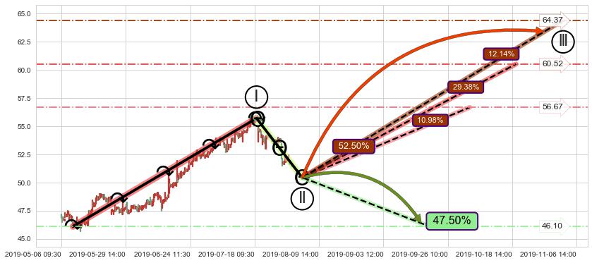 ➢ 大趋势走坏(跌破5浪起点位置)概率47.50%