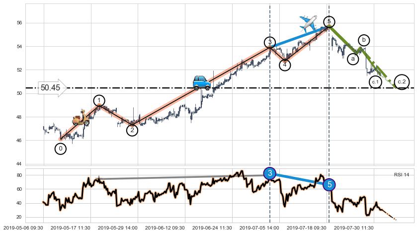 ➣ ['回调abc识别为: 【锯齿型调整浪】 ', '锯齿型:子浪535结构 ⓑ点振幅较小,ⓒ点继续发力远超ⓐ点结束位置']