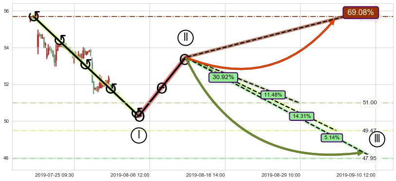 ➢ 循环浪继续向下【最低】位置(09-10:12, 47.95),匹配聚类样本比例16.62%, 可能性概率5.14%