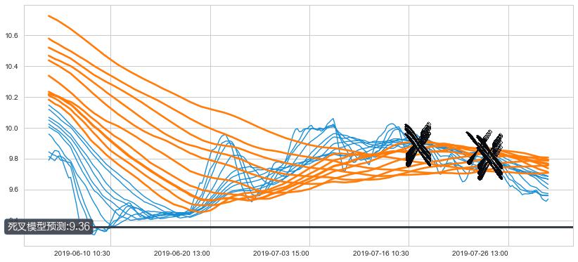 ➣ 90小时均线于(07-16 15:00: 9.86)形成【死叉】基于【死叉历史模型】预测死叉后最低波谷价格: 9.21, 死叉后最低价格9.49,尚未达到预测最低波谷价格, 预期继续下跌
