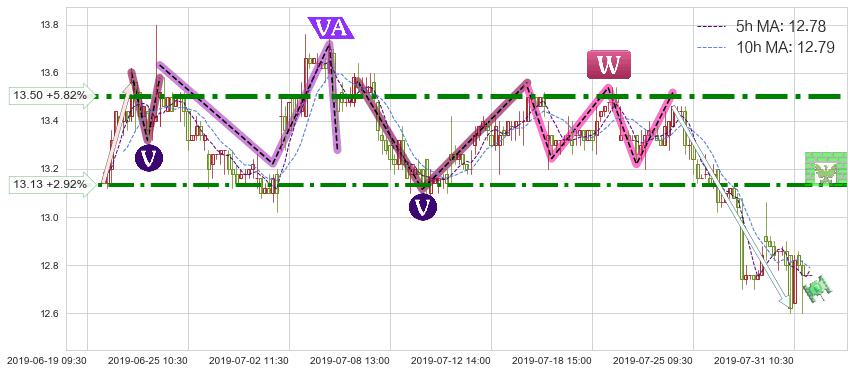 ♘ 阻力价格位13.13,可信任强度83.31%,距离最后交易2019-07-31 15:00形成的收盘价格12.76相差 +2.92%