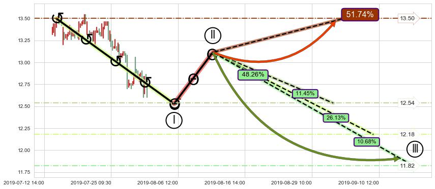 ➣ 循环浪继续向下【平均值】位置(09-09:14, 12.18),匹配聚类样本比例54.15%, 可能性概率26.13%