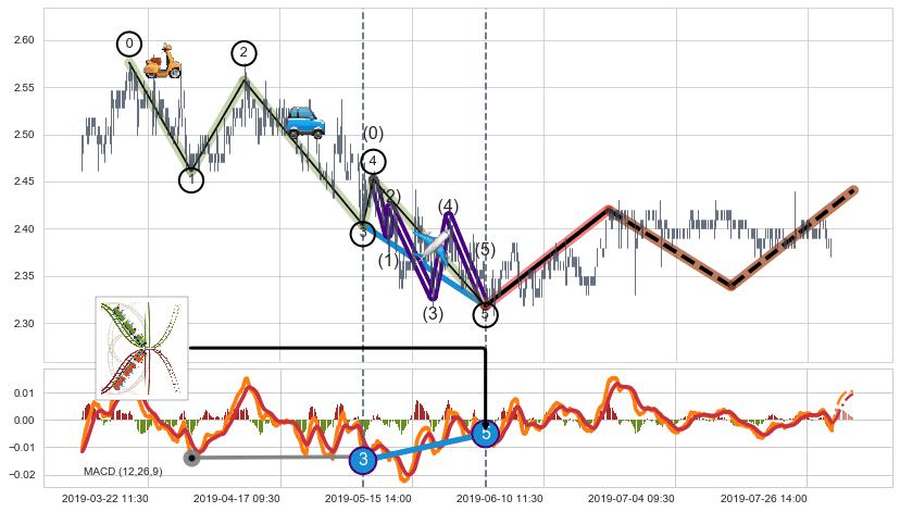 ➣ 波浪理论:临近C点,猜想达到c点后小反弹终止反转下跌 → 下跌 → 【拐点】临近 → 阶段均值回复结束后继续大周期趋势跟踪