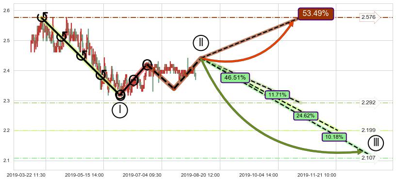 ➢ 循环浪继续向下【最低】位置(12-23:14, 2.107),匹配聚类样本比例21.89%, 可能性概率10.18%