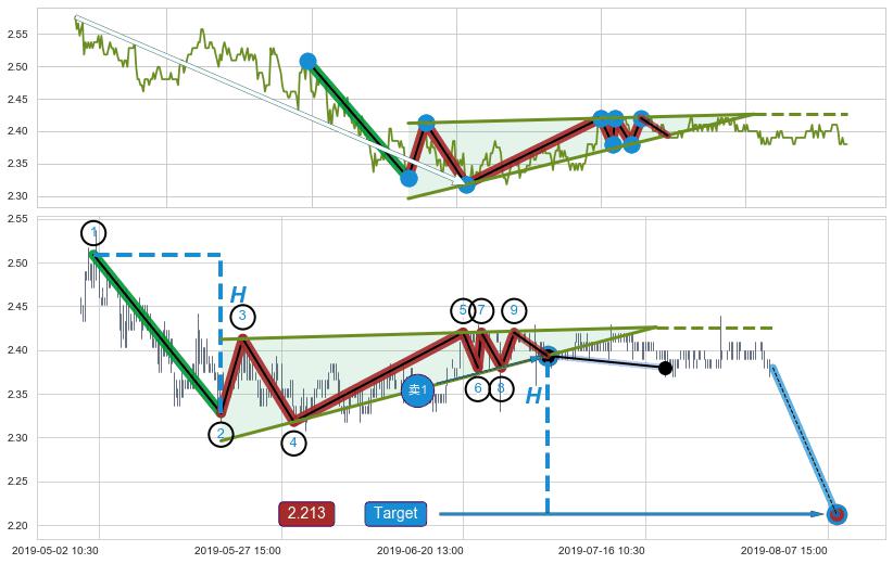 ➣ 【已确认突破】最后价格:2.380与最小【整理】第一目标价格→(08-08:14: 2.213 )相较: 下跌空间【较大】