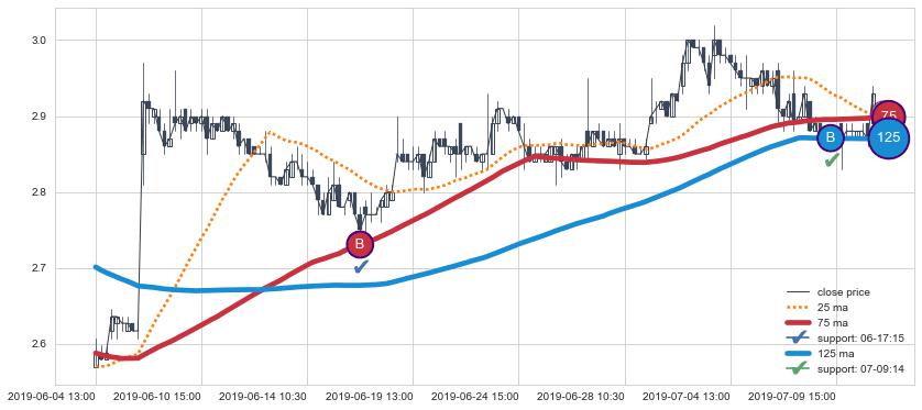 ➣ 75小时均线于(07-22 13:00: 2.938)形成【死叉】基于【死叉历史模型】预测死叉后最低波谷价格: 2.824, 死叉后最低价格2.860,尚未达到预测最低波谷价格, 预期继续下跌