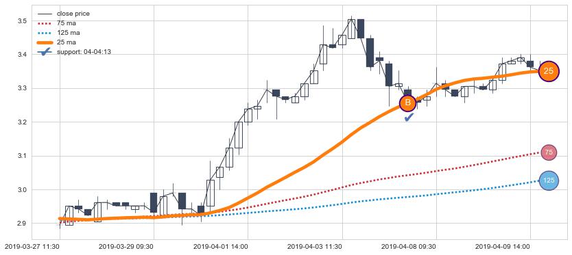 👍 尚未达到多条均线预测的最高波峰价格的平均值, 预期继续上涨