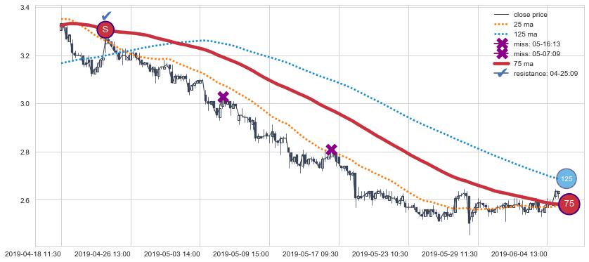04-23 09:30至06-05 10:30 慢线与快线呈空头排列, 慢线与快线接触少,无缠绕