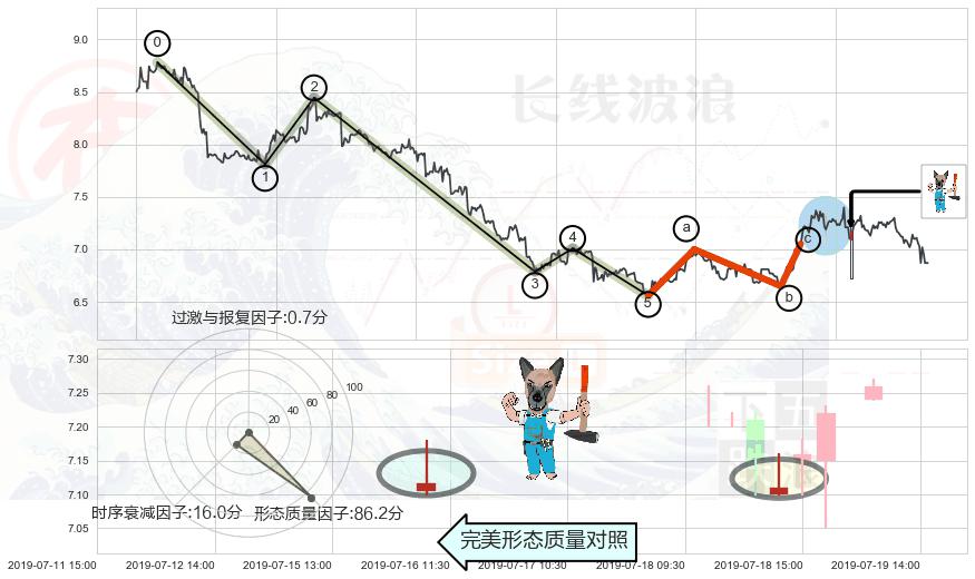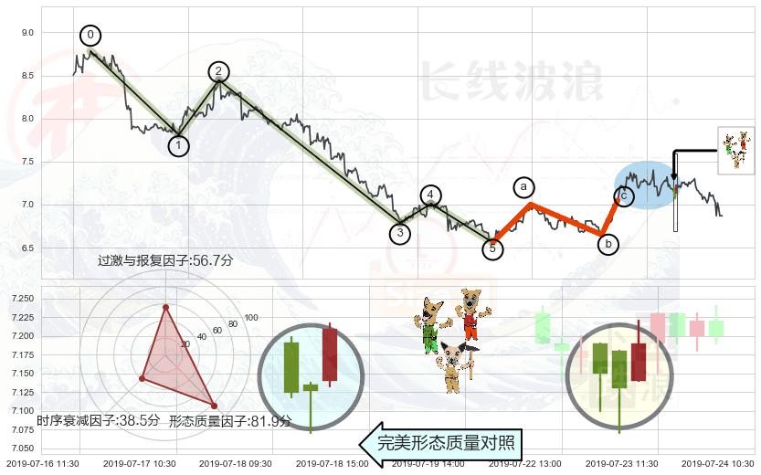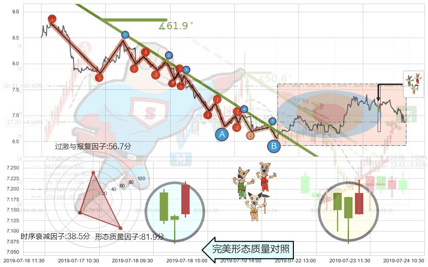 从2019-07-17 15:00至2019-07-25 15:00,共包含37个小时,阶段股价下跌-1.28%,阶段股价变动位移路程比: 1 : 13