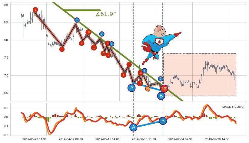 ➢ 最后的下跌趋势2019-03-15 09:30至2019-06-20 15:00:存在突破迹象,后续小反弹或者反转上涨