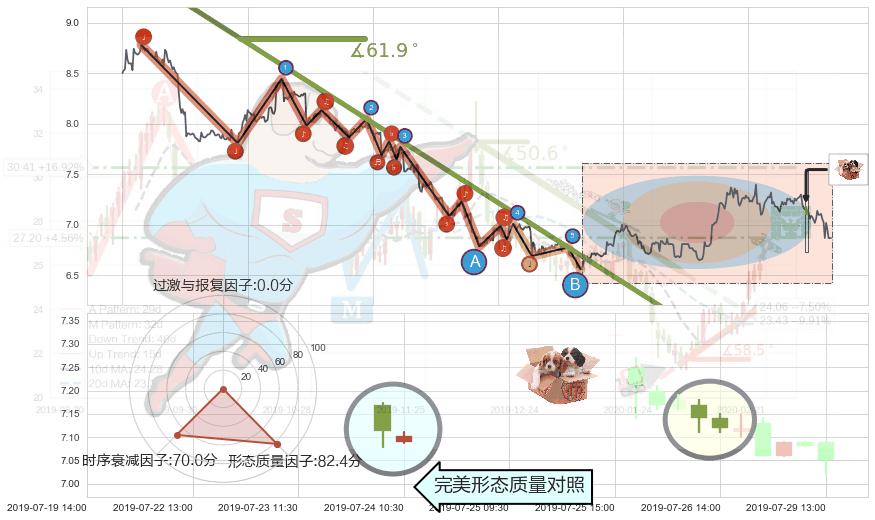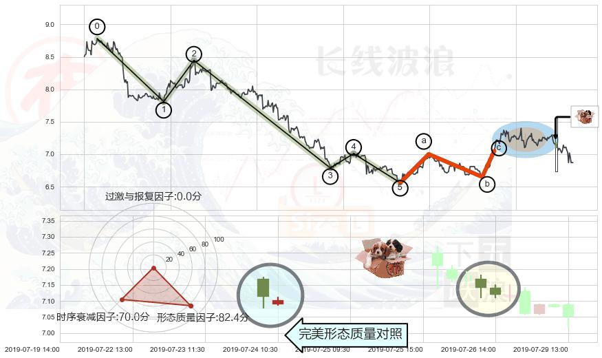 ➢ 🕰 价格走势在2019-07-30 15:00:00至2019-07-31 09:30:00期间形成吊颈线(上吊线),残存影响值:-7.12