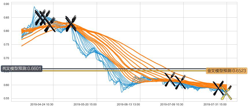 ➣ 120小时均线于(05-03 15:00: 0.8241)形成【死叉】基于【死叉历史模型】预测死叉后最低波谷价格: 0.7797, 死叉后最低价格0.5500,已经下跌超出预测最低波谷价格, 预期反弹