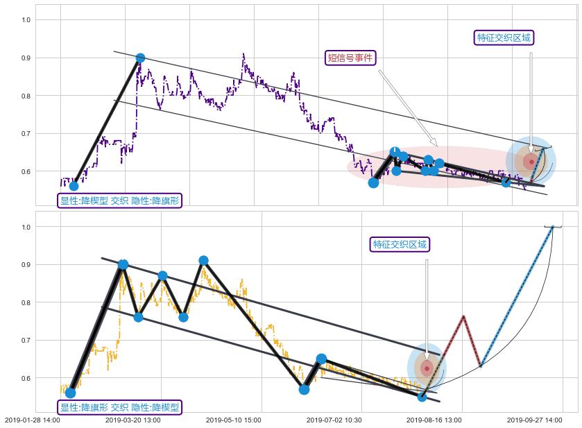 ➢ 降楔型属【短级别信号事件】降旗形属【长级别信号事件】长短周期组合信号事件, 短长事件长度比29.82%