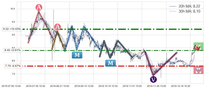 ♘ 阻力价格位8.40,可信任强度67.70%,距离最后交易2019-12-24 11:30形成的收盘价格8.35相差 +0.61%