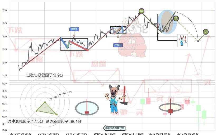 从2019-07-18 09:30至2019-08-02 11:30,共包含69个小时,阶段股价下跌-1.49%,阶段股价变动位移路程比: 1 : 16