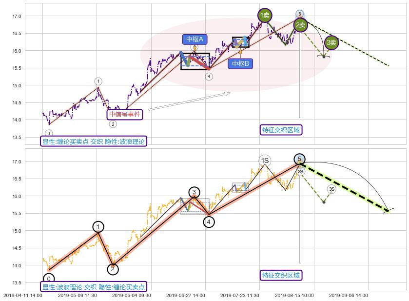➣ 缠论买卖点:猜想2卖持续蓄力下跌至3卖 → 下跌 → 风险信号 → 小趋势跟踪