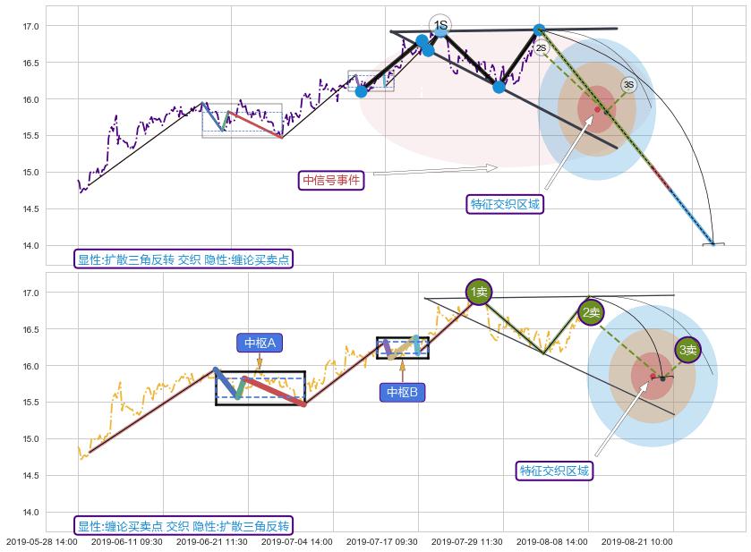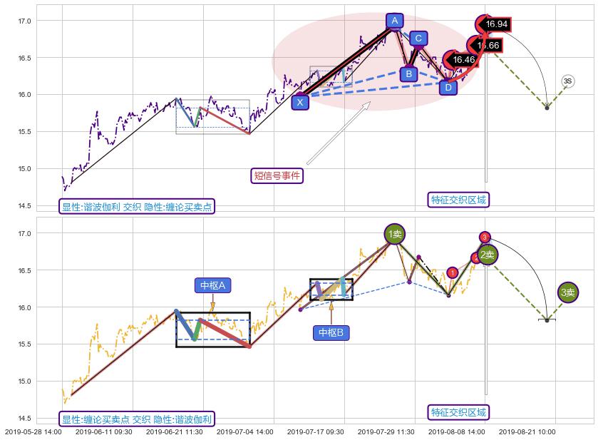 ➣ 缠论买卖点:猜想2卖持续蓄力下跌至3卖 → 下跌 → 风险信号 → 小趋势跟踪