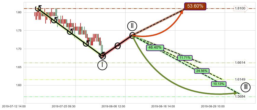 ➣ 预测:2019-08-06 12:00,【继续下探】稳定目前下跌趋势的前提下,预测价格:1.6579