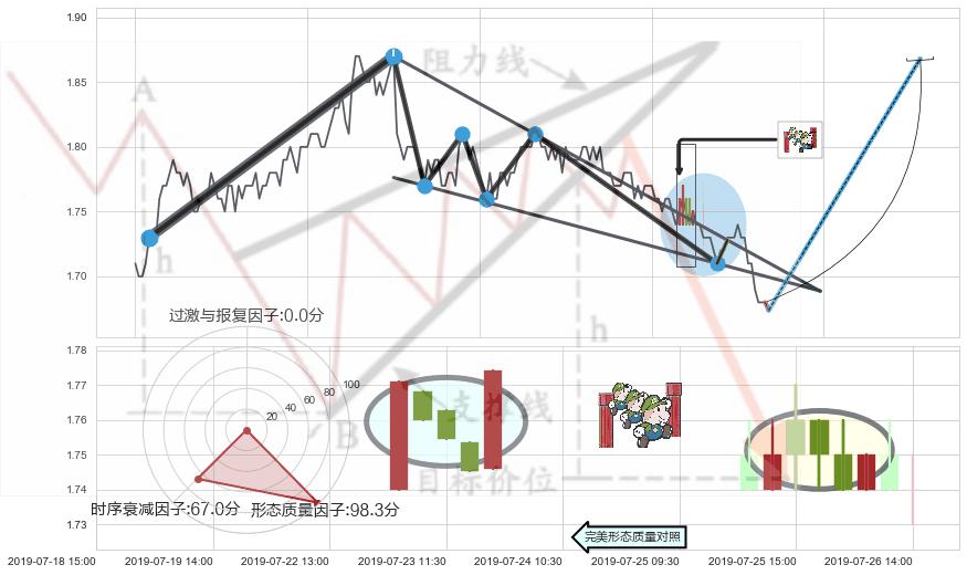 ♘ 在最后的下跌阶段2019-07-04 09:30至2019-07-31 15:00,存在 持续未破位的阻力位 ,阻力价格1.7286,可信任强度80.49%,其距离最后价格1.6800相差 +2.89%