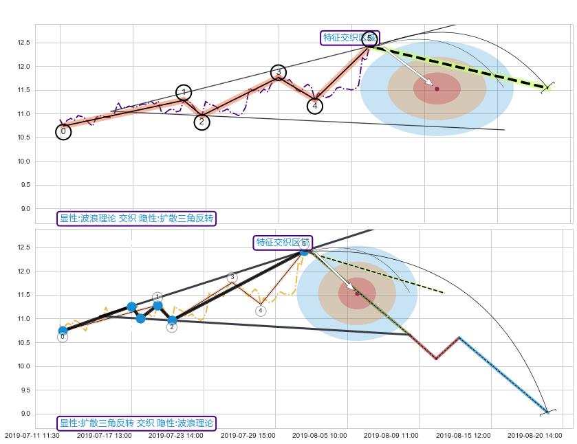 ➢ 波浪理论与扩散三角反转信号事件周期长度级别相同,同周期信号事件