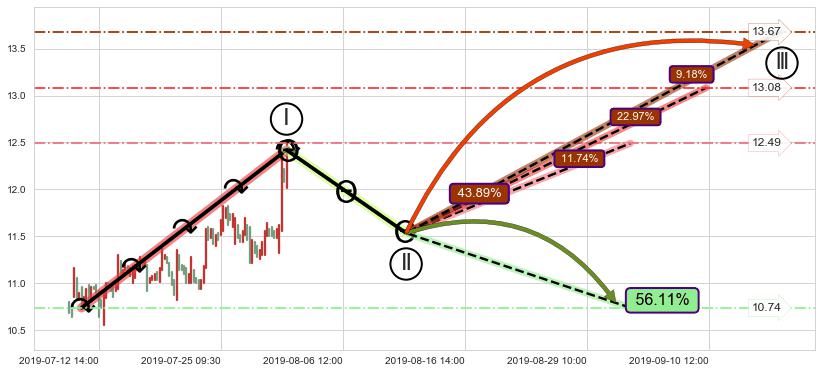 ➢ 循环浪继续向上【最低】位置(09-03:10, 12.49),匹配聚类样本比例26.75%, 可能性概率11.74%