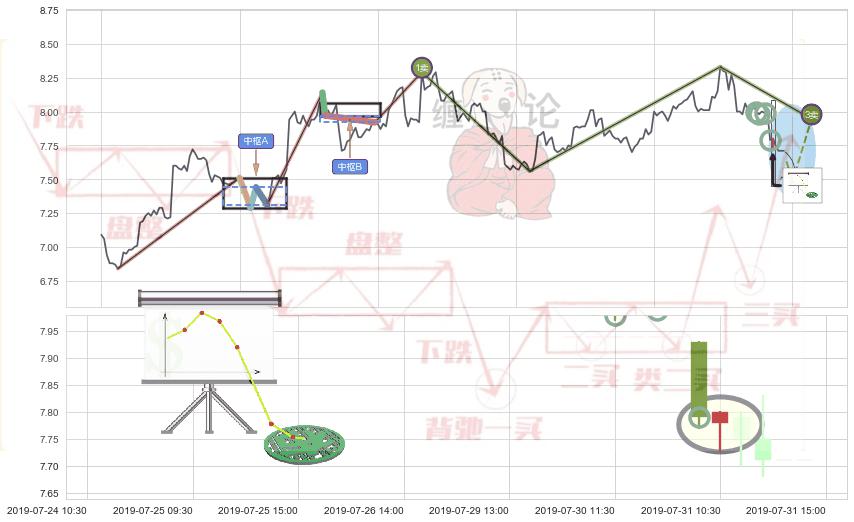 ➣ 【中枢B】:06-21:09-06-26:10,中枢由3笔构成,共20交易小时, ZG=7.97, ZD=7.92