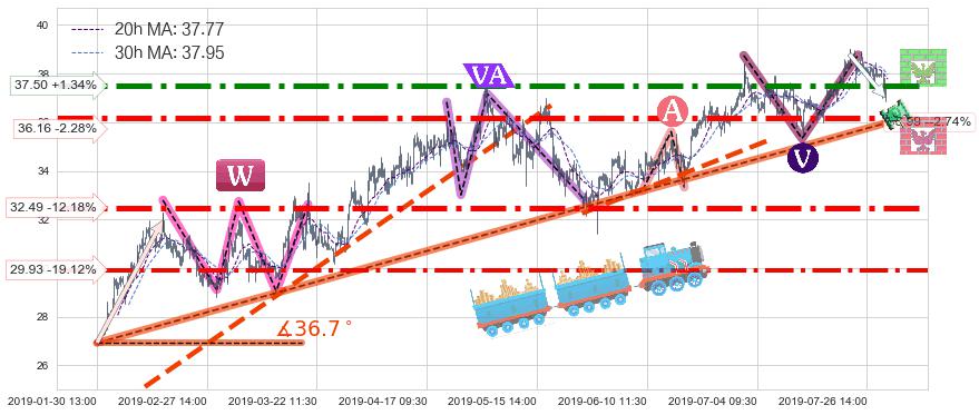 ♘ 阻力价格位37.50,可信任强度89.43%,距离最后交易2019-07-31 15:00形成的收盘价格37.00相差 +1.34%