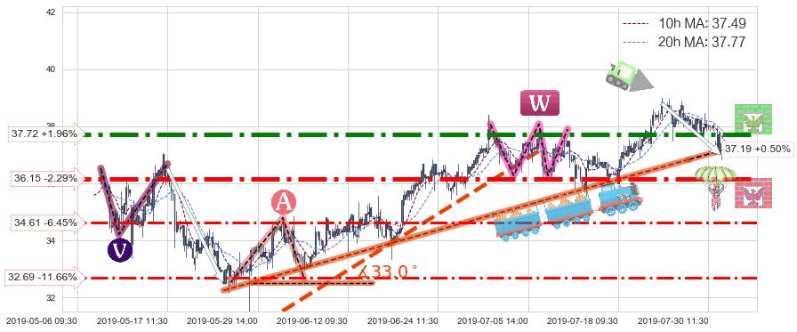 ♘ 阻力价格位37.72,可信任强度86.63%,距离最后交易2019-07-31 15:00形成的收盘价格37.00相差 +1.96%