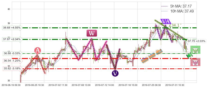 ♘ 阻力价格位37.87,可信任强度82.71%,距离最后交易2019-07-31 15:00形成的收盘价格37.00相差 +2.34%