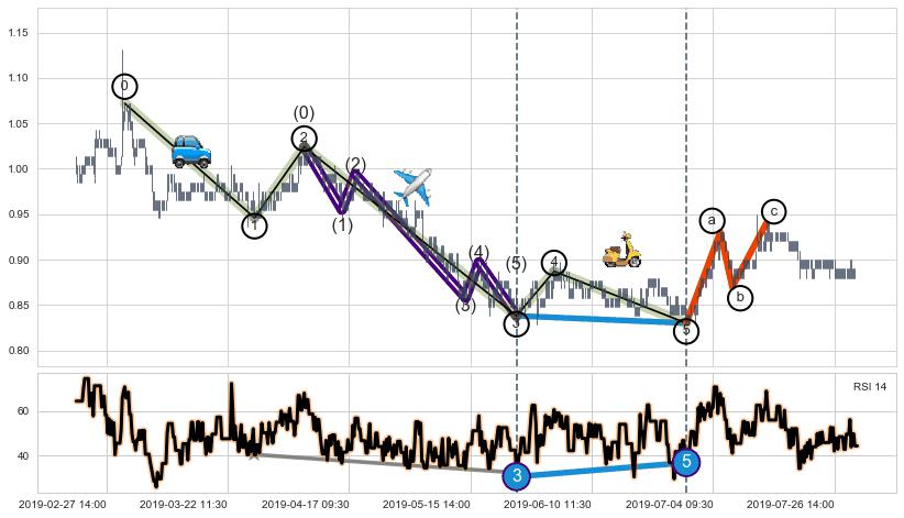 ➣ ['回调abc识别为: 【锯齿型调整浪】 ', '锯齿型:子浪535结构 ⓑ点振幅较小,ⓒ点继续发力远超ⓐ点结束位置']