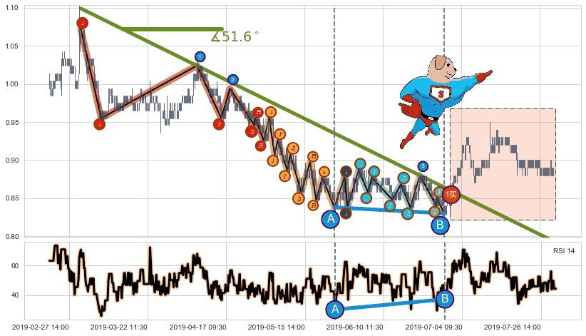➢ 2019-03-04 10:30-2019-07-04 09:30下跌趋势存在反转上涨[机会],其原下跌趋势的阻力位(0.7928)已被突破[强支撑信号],原下跌趋势角度: 51.6˚