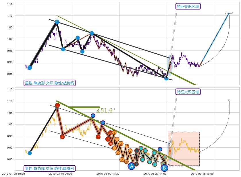 ➢ 最后的下跌趋势2019-03-04 10:30至2019-07-04 09:30:存在突破迹象,后续小反弹或者反转上涨