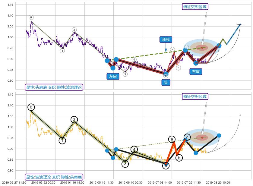从2019-07-23 13:00至2019-07-31 15:00,共包含39个小时,阶段股价上涨0.16%,阶段股价变动位移路程比: 1 : 150