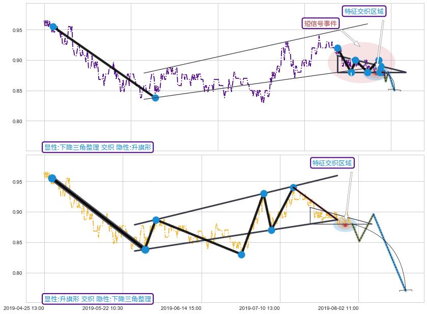 ➢ 下降三角整理属【短级别信号事件】升旗形属【长级别信号事件】长短周期组合信号事件, 短长事件长度比15.11%