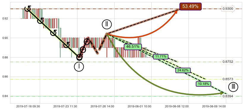 ➣ 循环浪继续向下【平均值】位置(08-07:15, 0.8573),匹配聚类样本比例52.93%, 可能性概率24.62%