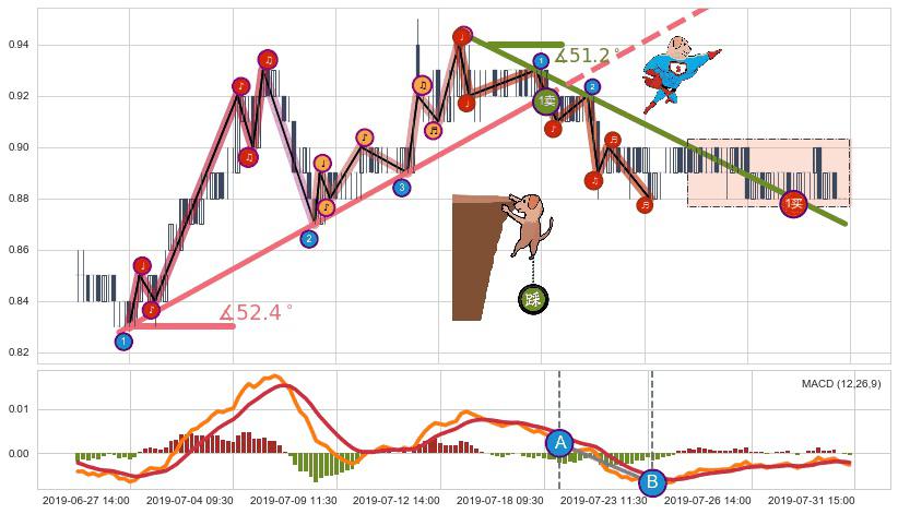 ➢ 最后的下跌趋势2019-07-15 11:30至2019-07-26 13:00:存在突破迹象,后续小反弹或者反转上涨