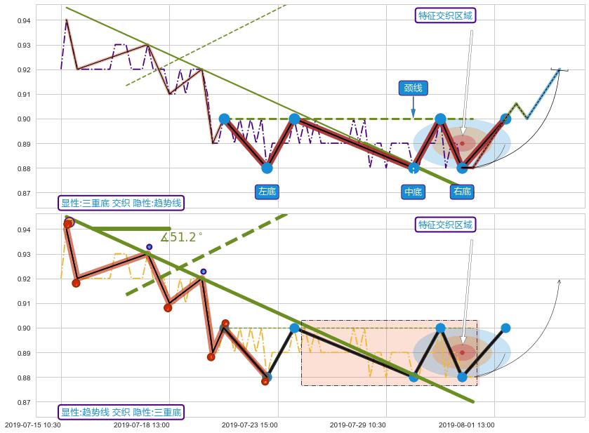 ➣ 【未确认突破,预测即将形成突破】三重底起点:07-22:10, 预测突破点:08-01:15,形态共53交易小时