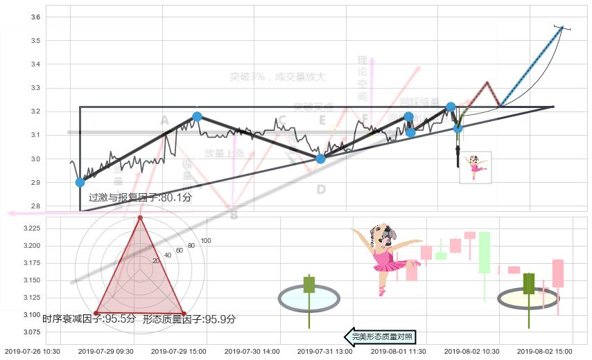 ♘ 在最后的上升阶段2019-06-14 10:30至2019-08-02 15:00存在 持续未破位的支撑位 ,支撑价格3.072,支撑可信任强度72.49%,其距离最后价格3.180相差 -3.40%