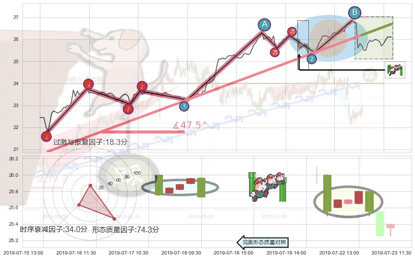 ➢ 2019-06-19 14:00-2019-07-29 11:30上升趋势存在反转[风险],其原上升趋势的支撑位(26.69)已破位[强阻力信号],原上升趋势角度: 47.5˚